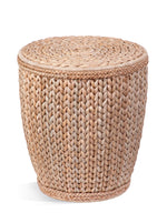 Caffey Round End Table features a boho style with the natural fibers of the rafia. Finished in light tan tones, the table is constructed with woven and braided raffia. The natural fibers will have varying color tones, making each piece completely unique.