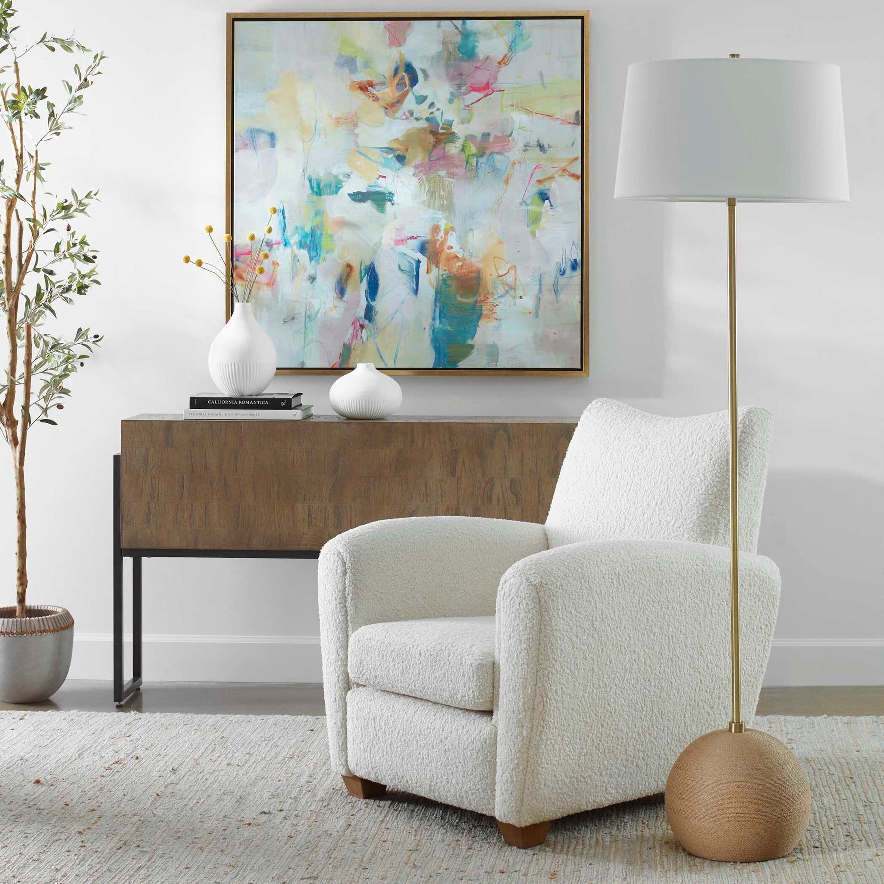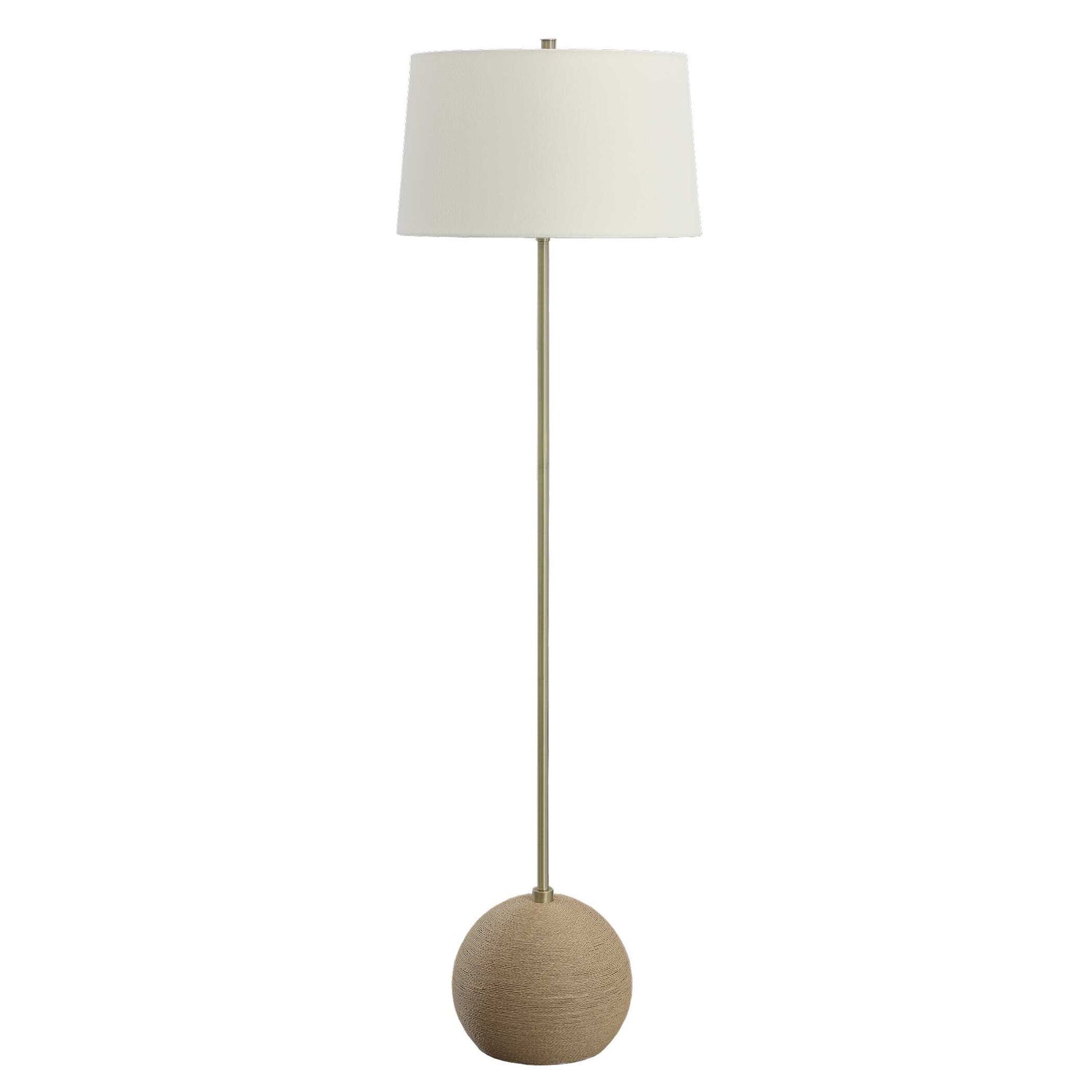 This Floor Lamp Features A Casual, Natural Braided Rattan Wrapped Foot Accented By Antique Brass Plated Iron Base. A Slightly Tapered Hardback Shade In A Crisp White Linen Fabric Complements The Piece.