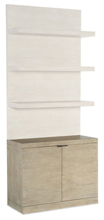 Unit price perClear the clutter and bring a sense of calm and tranquility into your interior space with the Cascade Bookcase Base, recommended to be used with the 6120-10443T-80 Hutch. Crafted of Oak Veneers, the soft taupe Terrain finish with a tactile dry-brushed finish and champagne-colored tab hardware exudes a serene neutral color palette. Base can be used alone and features 2 doors with soft-close hinges and one adjustable shelf behind.