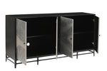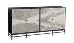 The Caspar Iron Sideboard blends modern luxe design with lasting craftsmanship. Fashioned from solid iron, each of its four doors undergoes a manual acid-wash finishing process, resulting in a distinctive landscape effect that adds character to every piece. Inside, find functionality with four shelves and media cord management.