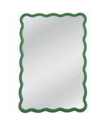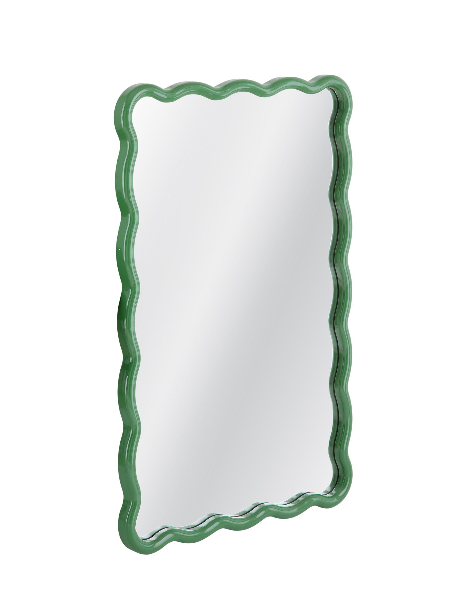 The Cassia Wall Mirror is an ideal accent to enliven your space, boasting a fun green frame for a vibrant touch. Its wavy edges offer a playful twist on the traditional rectangular shape, adding character to any room. Crafted with a green finish, this mirror complements your decor effortlessly.