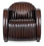 In a bold modern design with an Art Deco flair, the Banks Chair has a plush channeled back and seat and rounded track arm style with wood sled feet. Welt and topstitch trim adds an upscale feel, along with the Vortex semi-aniline top grain leather.