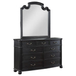 Reflect beauty and light in your sanctuary with this elegant dresser mirror. Framed in the same dark, rich tones as the set, it complements the dresser perfectly, creating a space where getting ready is done in style. The mirror invites light and depth into the room, a beautiful and functional adornment.