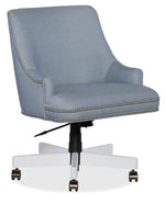 The Chai Me Desk Chair comes standard with a tight seat cushion, welt trim and 1/2-inch nailheads. These smartly-scaled and expertly tailored desk chairs will bring refined style to your home office. Designed with a focus on both form and function, each customizable piece moves about the room on a five-star base with casters to create a stylish study to get the job done. Make it your own with a selection of more than 500 cover options, including both fabric and leather.