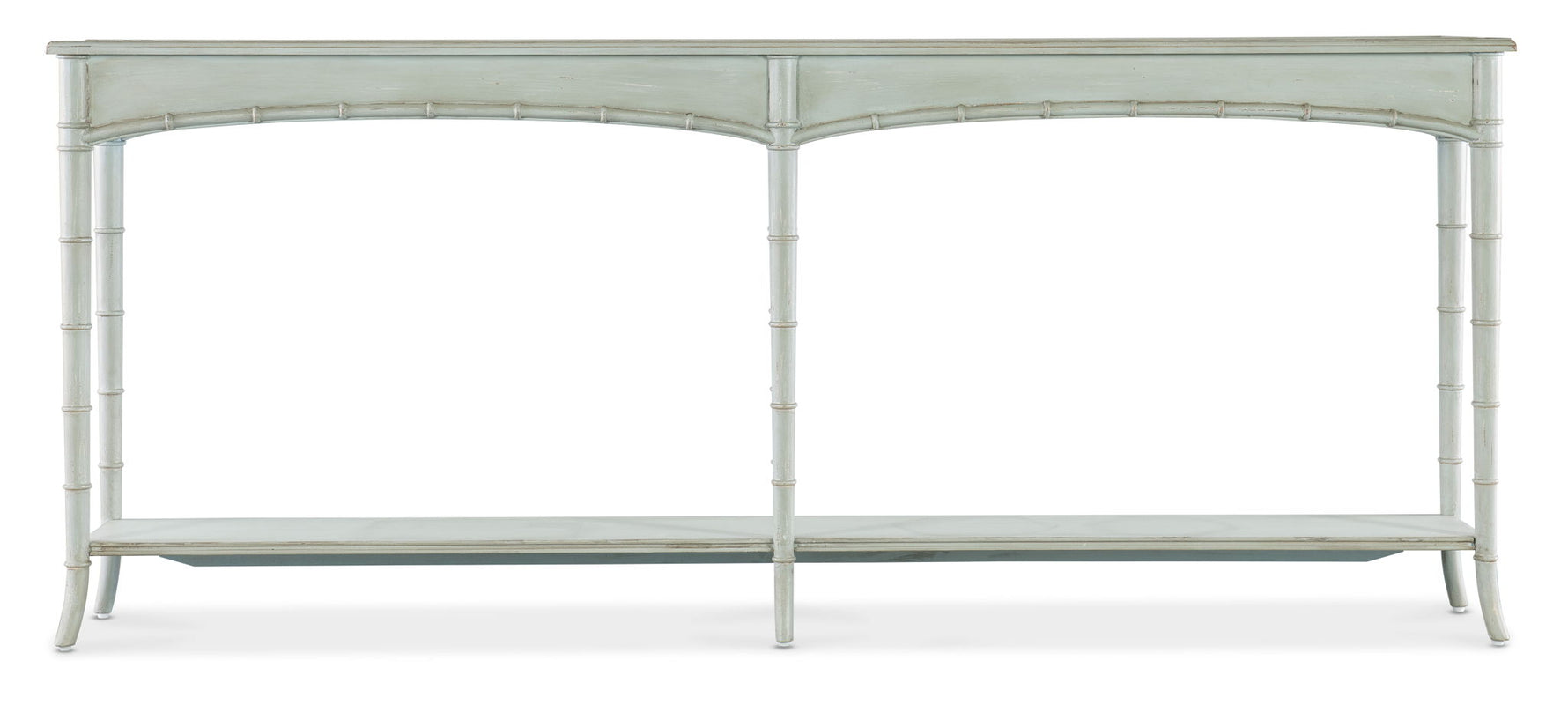 Unit price perCapturing the vintage charm of the coastal South and the tropical craftsmanship of the West Indies, the Charleston Console Table is crafted of Maple Veneers and Resin with bamboo-motif accents and slender bamboo-style legs. Featuring one fixed shelf, it is finished in the charming Haint Blue, a soft blue color that can be found on the ceilings of porches and entryways, window shutters and doors of the South. The color is inspired by folklore brought to the American South more than 200 years to keep ‘haints’ or spirits, which could not cross water, from entering the home or dwelling.