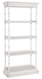 Unit price perCapturing the vintage charm of the coastal South and the tropical craftsmanship of the West Indies, the Charleston Etagere has bamboo-motif posts and crown molding on the top. Crafted of Maple Veneers and resin, it is finished in White Heron, a softer interpretation of the classic Southern limestone white with a slightly brighter sheen, delivering an heirloom-quality finish.