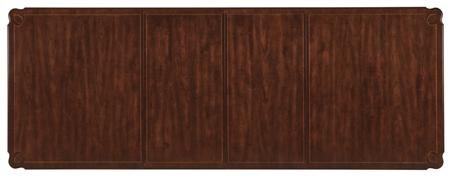 Unit price perGrand yet warm and inviting, the Charleston Rectangle Leg Dining Table is crafted of Cherry and Walnut Veneers with intricate Maple Inlay and a Solid-Wood Edge top. The table base is finished in the vibrant Black Cherry patina with subtle distressing and an heirloom quality. The tabletop is in Maraschino Cherry, using natural grain Cherry veneers showcasing the dramatic cathedral structure with selective inclusion of naturally-occurring knots to deliver a rich warm cherry finish and a smooth sophisticated aesthetic. Offered with two 22-inch leaves, the table extends to 118 inches long. With both leaves, it accommodates up to 10 coordinating chairs, accommodates up to 8 chairs with one leaf and up to 6 without any leaves.