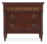 Unit price perThe tropical craftsmanship and botanical carving of the West Indies meets southern charm with the Charleston Three-Drawer Nightstand. Crafted of Cherry Veneers and Cane with a Solid-Wood Edge Top, the top drawer has a cane inset on the drawer front, the front of the case has posts, and the feet feature metal ferrules. The nightstand is finished in Maraschino Cherry using natural grain Cherry Veneers showcasing a dramatic cathedral structure with naturally occurring knots to deliver a rich warm finish and a smooth sophisticated aesthetic. There’s a two-port USB charger on the back and a phone-cord lip on the back.
