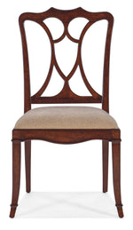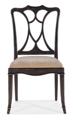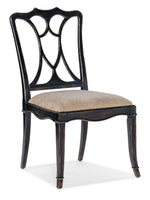 Unit price perTimeless, warm and inviting, the Charleston Side Chair with an upholstered seat is the essence of gracious living. The chair has a wood splatback and fretwork design with a rolled claw arm and scalloped apron. The vibrant Black Cherry finish has an heirloom patina with subtle distressing. The seat is upholstered in a sand-colored fabric.