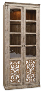- Two seeded glass doors with mirrored fretwork at the bottom