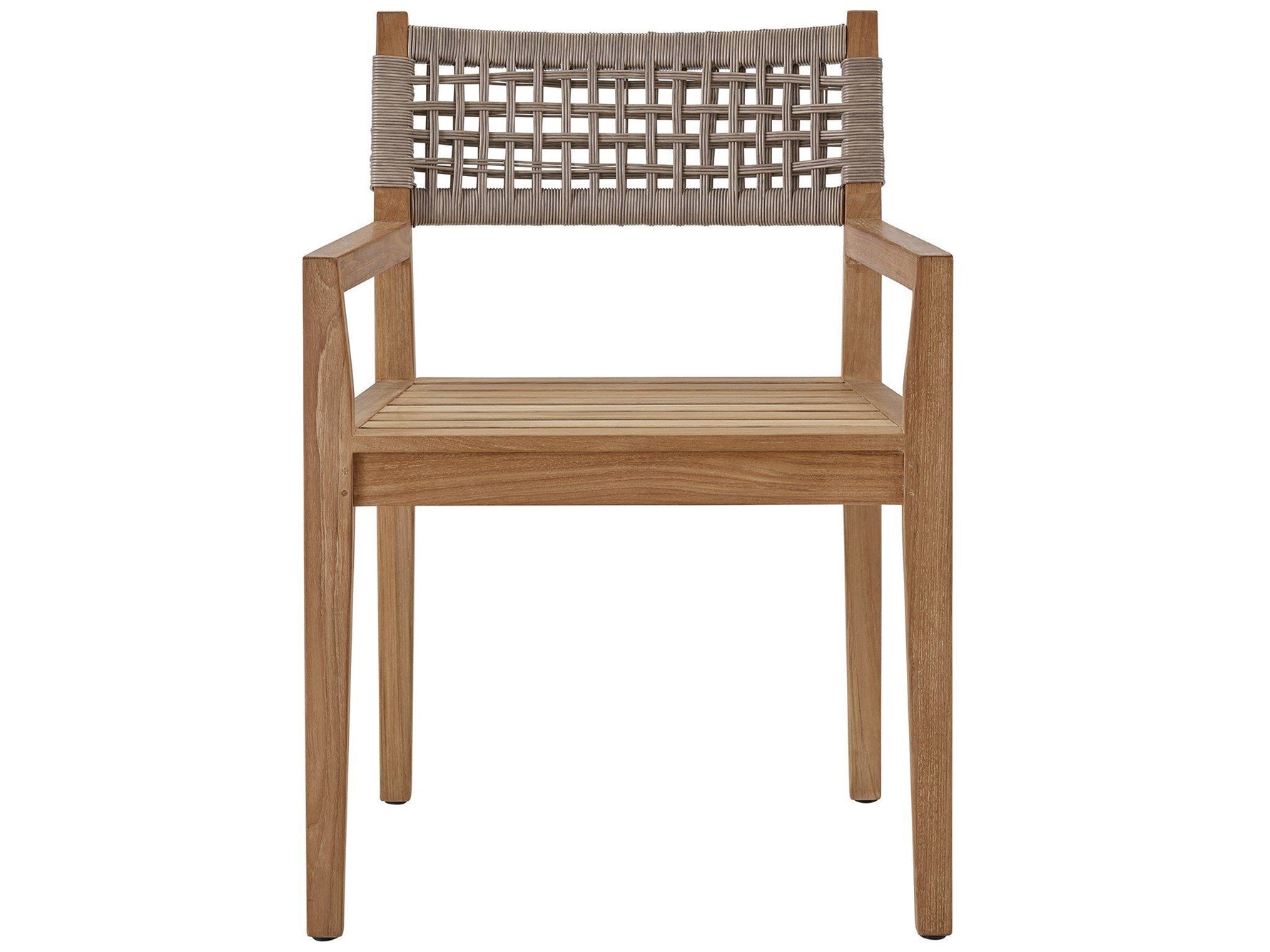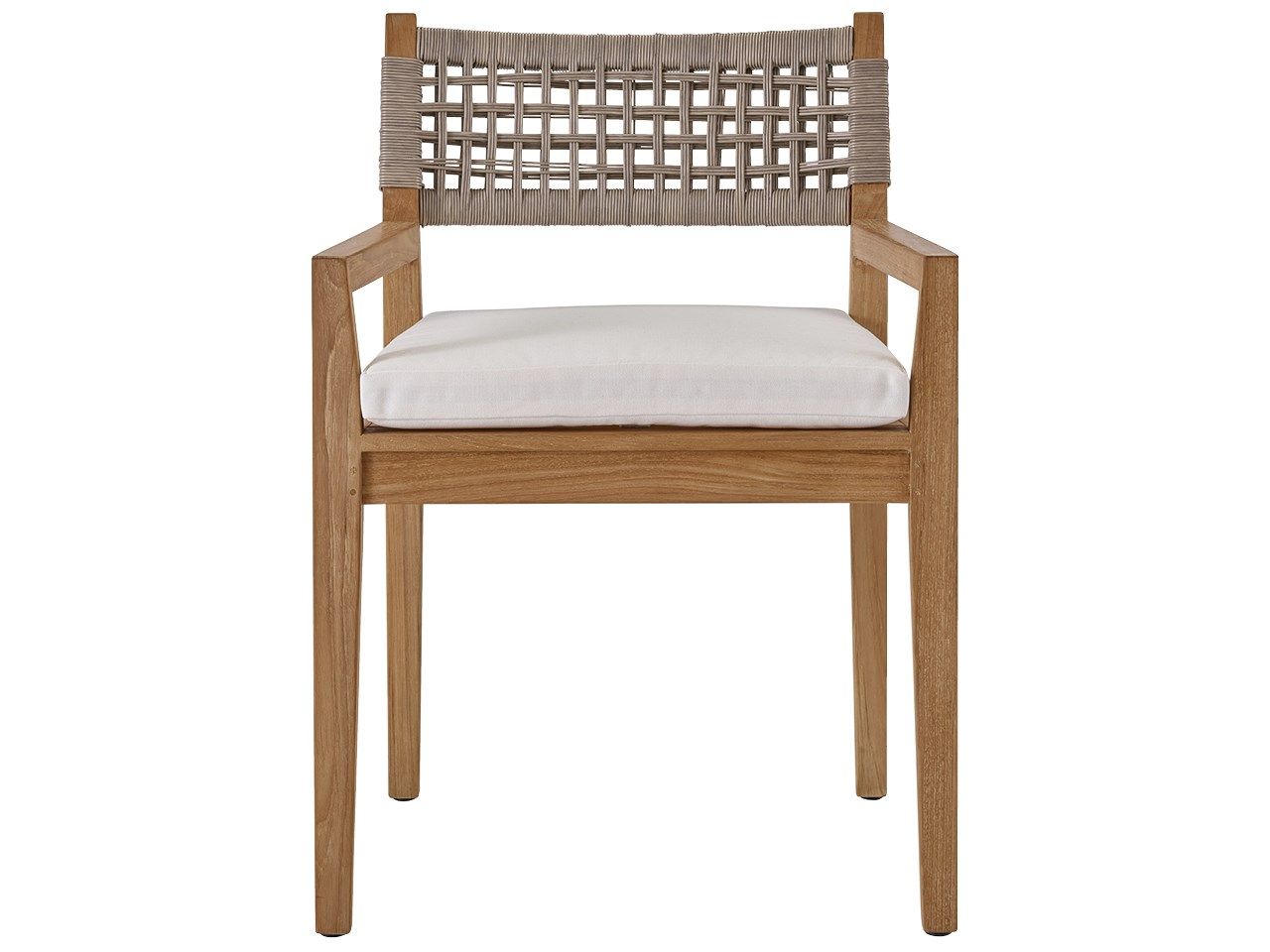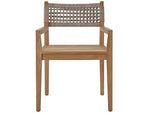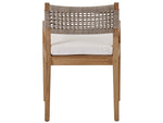 Give outdoor dining spaces a chic update with the Chesapeake Arm Chair, featuring an upholstered cushion and striking wicker accents on the back for added texture.