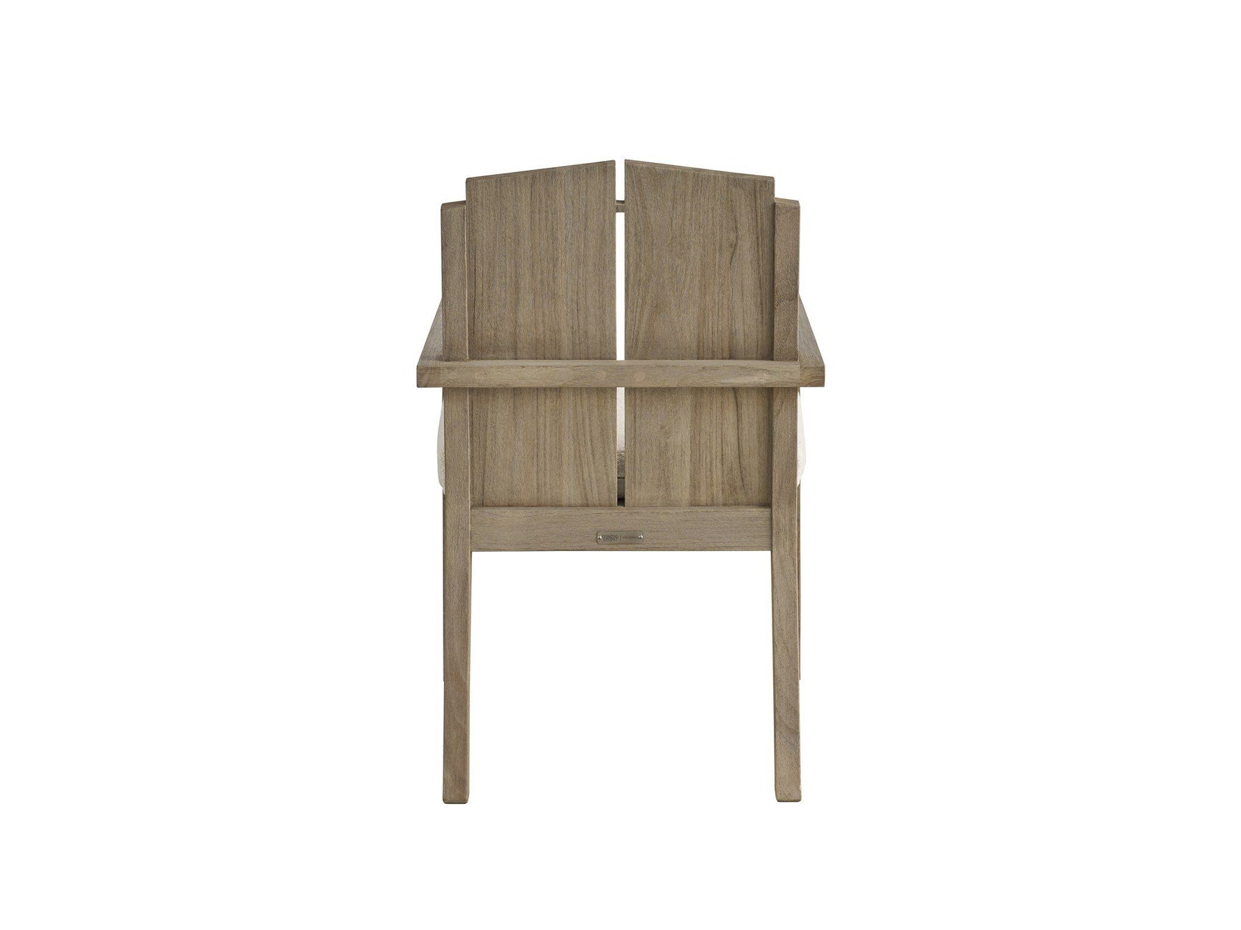 Indulge in relaxation with the Saratoga Arm Chair. Featuring the collection's signature angled seat back, wide teak arms, and a warm weathered teak finish, this comfortable chair embodies coastal charm and modern design. The plush cushion provides a soft and comfortable seat, perfect for relaxing or enjoying conversations with loved ones. The armrests offer additional support and comfort, making this chair a luxurious addition to your outdoor space.