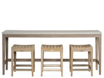 Unwind with friends and family around the Saratoga Conversation Console. This high-top table, crafted with a warm weathered teak finish and cast concrete accents, creates a stylish and practical hub for outdoor entertaining. The included backless teak bar stools offer comfortable seating, while the option to purchase them individually allows for customization to your space needs.