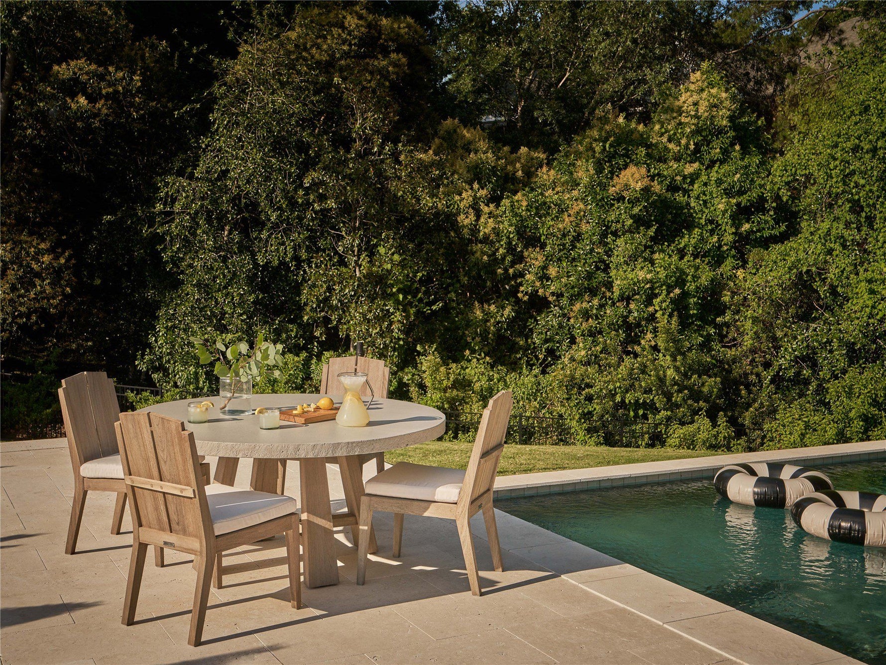 Bring coastal comfort to your outdoor dining space with the Saratoga Side Chair. The angled back and wide teak slats offer a touch of modern Adirondack style, while the warm weathered teak finish adds a natural touch. The plush cushion also provides a soft and comfortable seat, ensuring optimal coziness for dining or casual conversation.