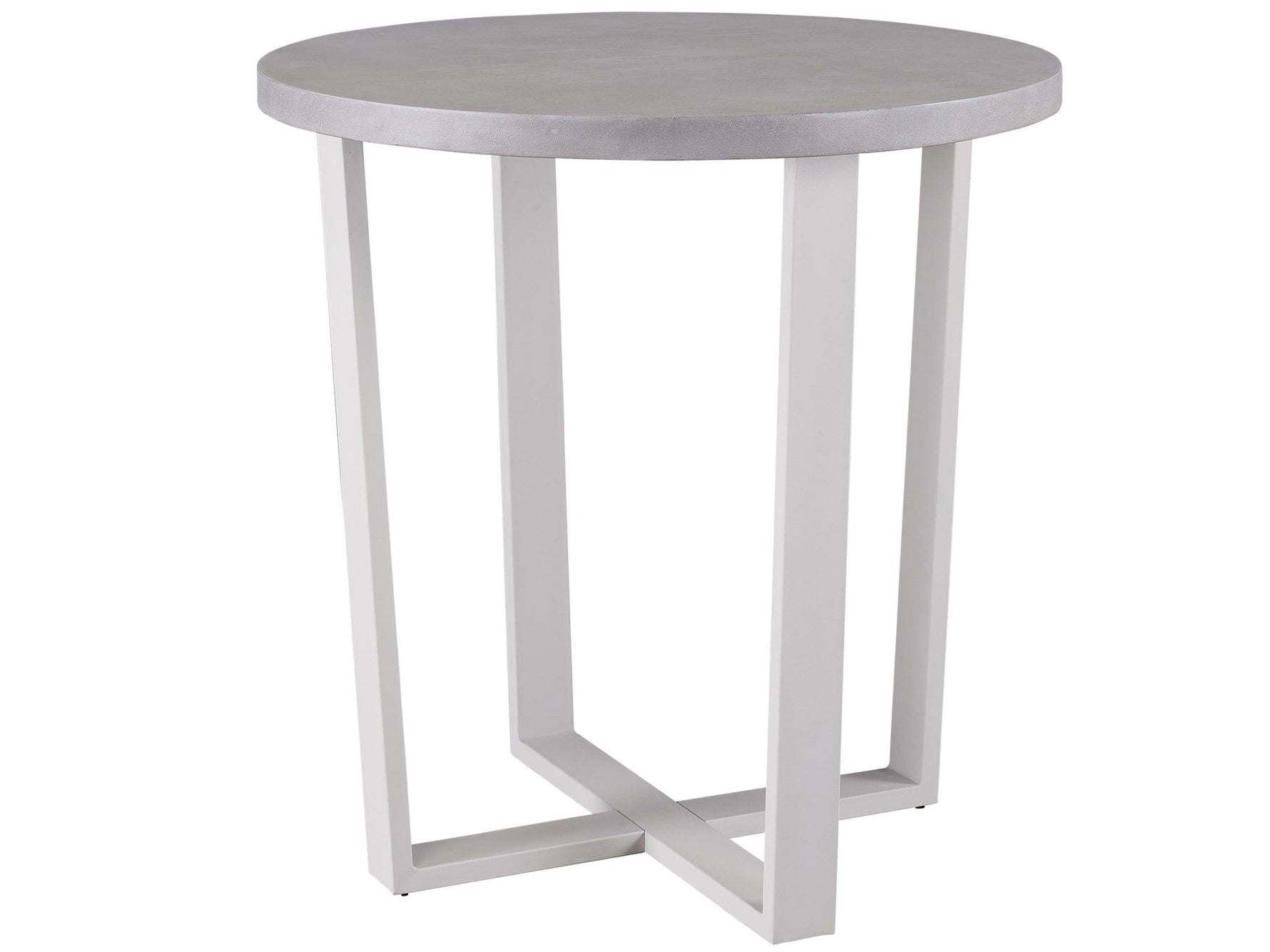 A white aluminum base supports a rounded cast concrete top in the South Beach Bar Table, a casually cool accent piece perfect for a variety of outdoor design styles.
