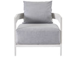 The South Beach Lounge Chair introduces a casual elegance to outdoor living spaces with light gray oversized seat cushions perfectly complemented by a fresh white-hued aluminum body with subtle curvature.