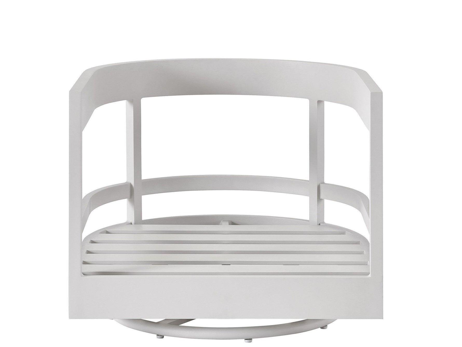 Built atop a convenient swivel base, the South Beach Swivel Chair introduces a casual elegance to outdoor living spaces with oversized seat cushions perfectly complemented by a fresh white-hued aluminum body with subtle curvature.