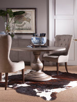 - The 54-inch Round Table Seats Five Comfortably, Is Scored For A Plank Effect And Features An Urn Shaped Pedestal Base