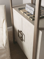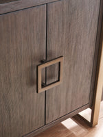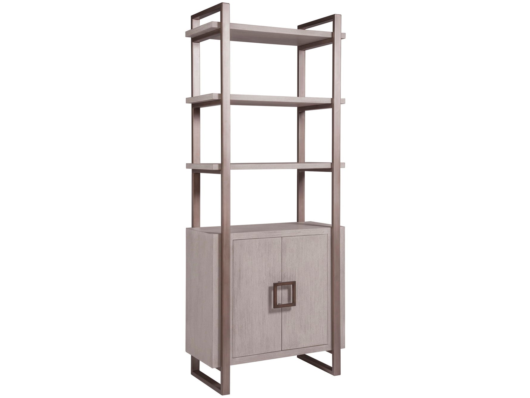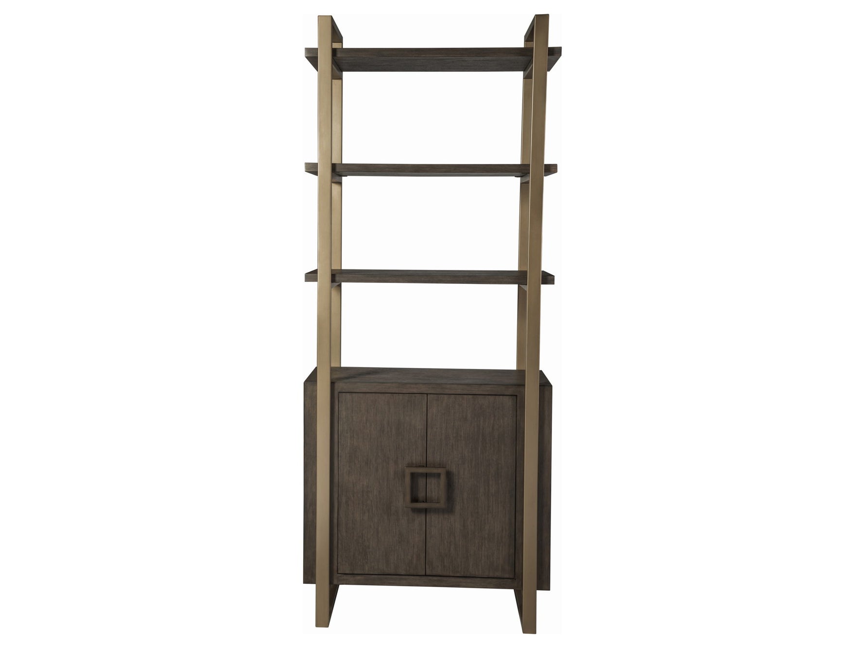 Mahogany solids and veneers with hand wire brushed graining balance the metal frame and hardware in a warm metallic, hint of copper.