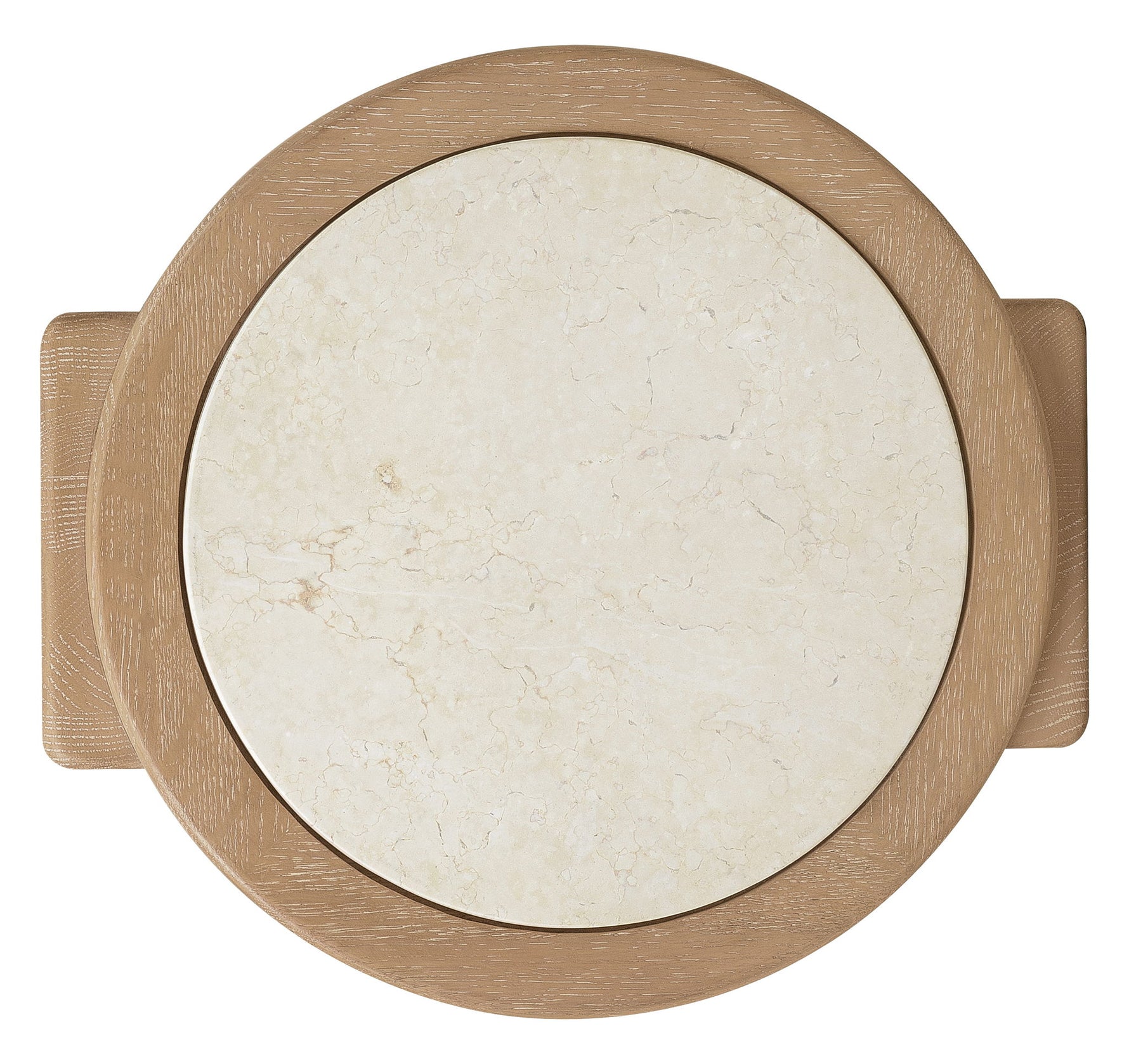 The Helena Spot Table is a versatile accent piece that pairs solid white oak with a natural marble top. The multi-step Desert Oak finish on the base adds a rich, textural appeal, while the marble top features beige, gray, and brown colorations, making it a luxurious addition to any living room. Designed for practical elegance, this round spot table with an open framed base fits seamlessly into modern and casual interiors.