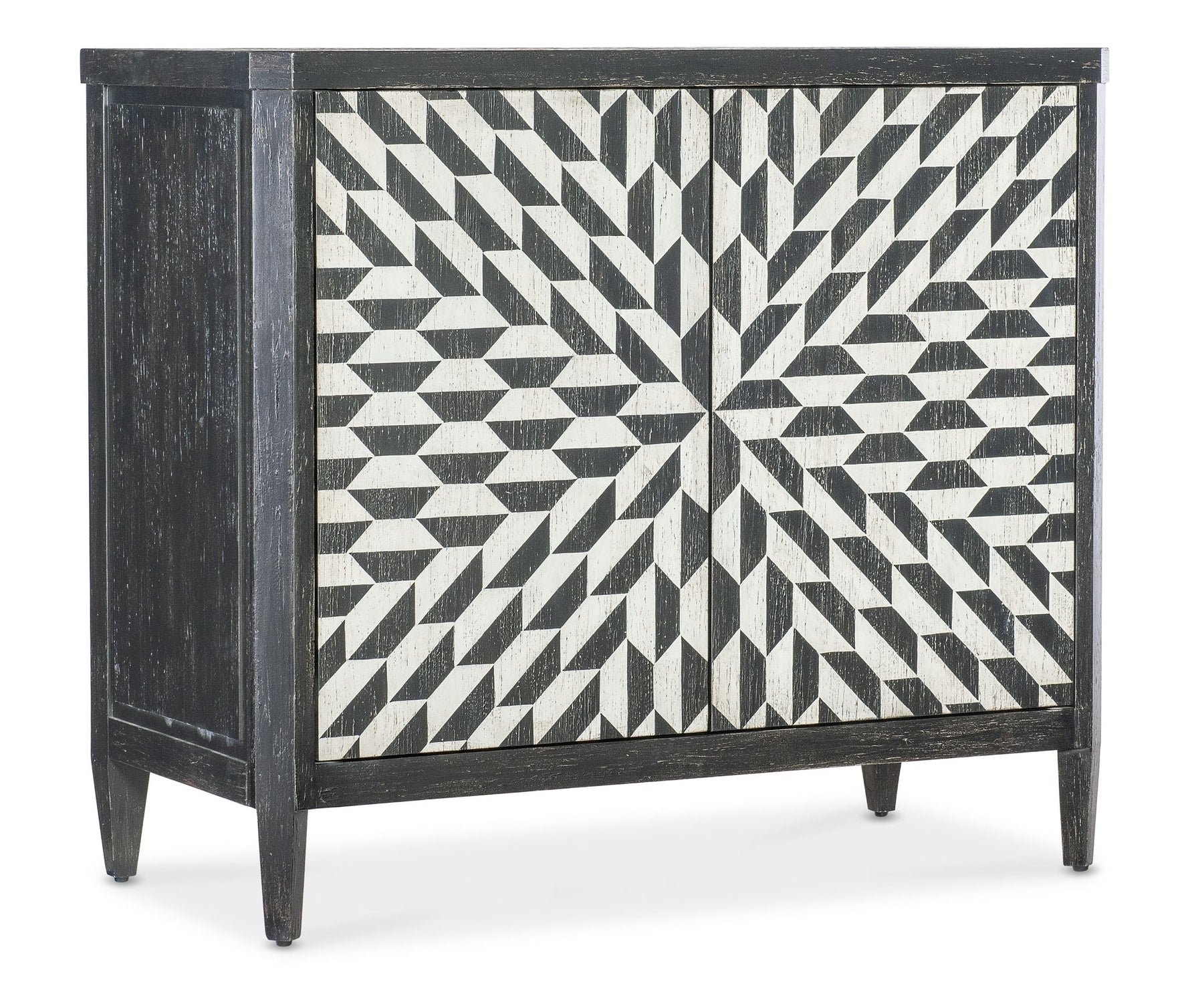Unit price perThe Lancaster Hall Chest offers the classic and always-stylish black & white combination and timeless painted starburst pattern on the door fronts. Crafted of Maple Veneers, the two doors have soft-close hinges and magnetic door catches with one adjustable shelf behind the doors.