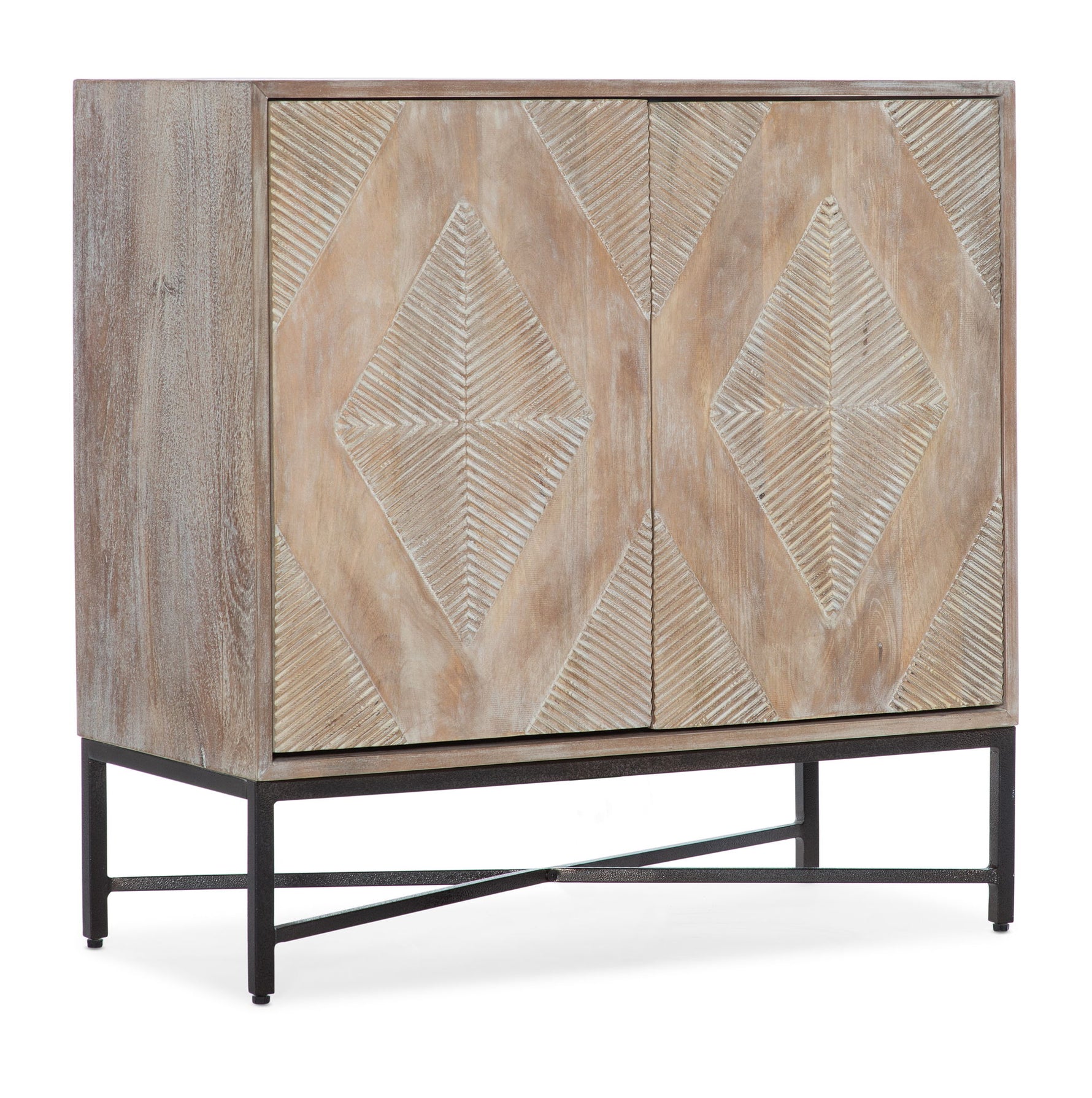 Unit price perOffering a casual modern rustic design with a tribal flair, the Commerce & Market Two-Door Chest is crafted of Mango Solids and Iron with carved front doors with diamond motifs, There’s one adjustable wood shelf behind the doors and a metal base.