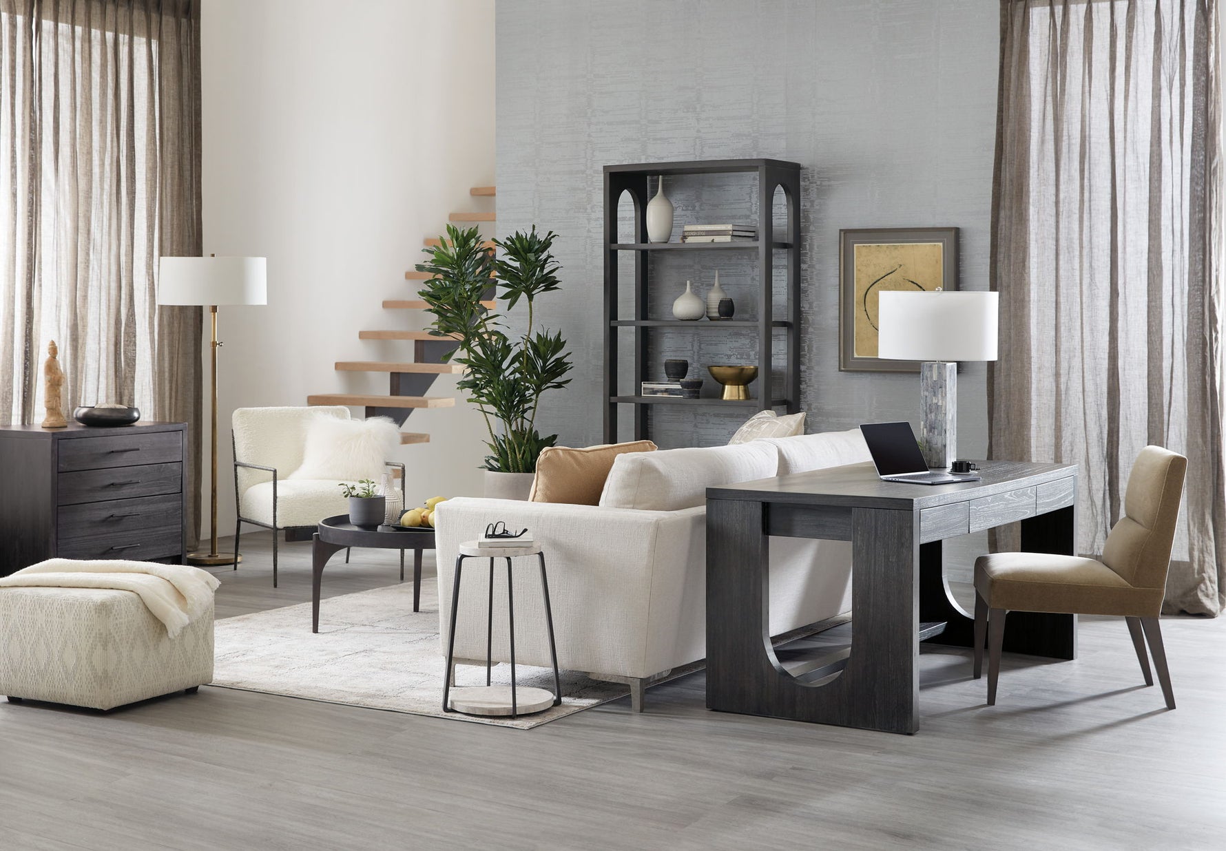 Unit price perSet a youthful, energetic tone in your work space with the Commerce & Market Writing Desk, crafted of Mindi Veneers with a black finish with the wood grain showing through. The organic silhouette features 3 drawers, two removable partitions with both the left and right-side drawers and a pencil tray and mouse pad that can be used in either the left or right-side drawer. The drop-front center drawer has a cut-out for wire management.