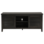 Upgrade your entertainment space with this stylish 60-inch TV stand, designed to accommodate TVs up to 65 inches. With two louvered doors, it combines classic charm with modern functionality, offering concealed storage for media equipment and accessories. The central open shelving provides easy access to devices, while cord management cutouts behind each compartment ensure a neat and organized setup. The rich wood finish, combined with a planked top, adds a touch of rustic sophistication to any room. Perfect as a TV stand, storage cabinet, or buffet, this versatile piece balances style and practicality in equal measure.