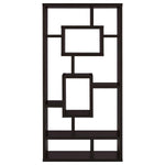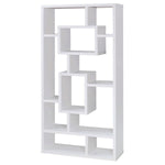 • Geometric bookcase with varying boxes creates an eye-catching display for books and collectibles