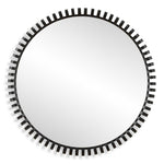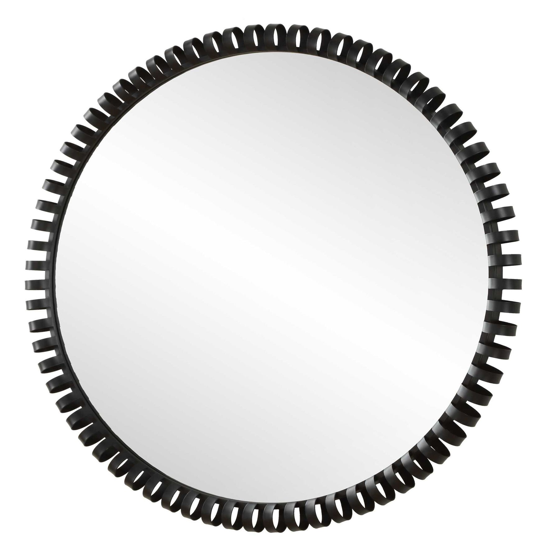 • This Large Round Mirror Is Crafted From Solid Iron And Elegantly Finished In Satin Black. Its Commanding Presence Is Accentuated By Thick Rings Surrounding An Inner Band, Adding A Touch Of Contemporary Sophistication To Any Space.