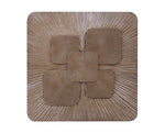 The Crobuzon Wall Art features a rustic modern carved wood panel with a starburst pattern background, where wood pieces mimic the natural form of organic leaves. The design blends earthy elements with a contemporary touch, creating a unique and striking focal point for any space. The rounded corner detail adds a soft, refined touch, enhancing the overall aesthetic. This piece brings a sense of warmth and nature into your home while maintaining a stylish, modern appeal.