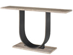 Boasting an artful connection of curves and angles, the Equilibrium Console finds ideal aesthetic balance with a bronzed, bold U-shaped body offset by a top and base featuring a modern, grainy finish.