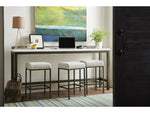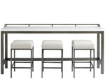 An artful ‘two-in-one’ furnishing of sorts, the Essence Console Table features a smooth, clean tabletop that neatly houses three upholstered stools underneath.