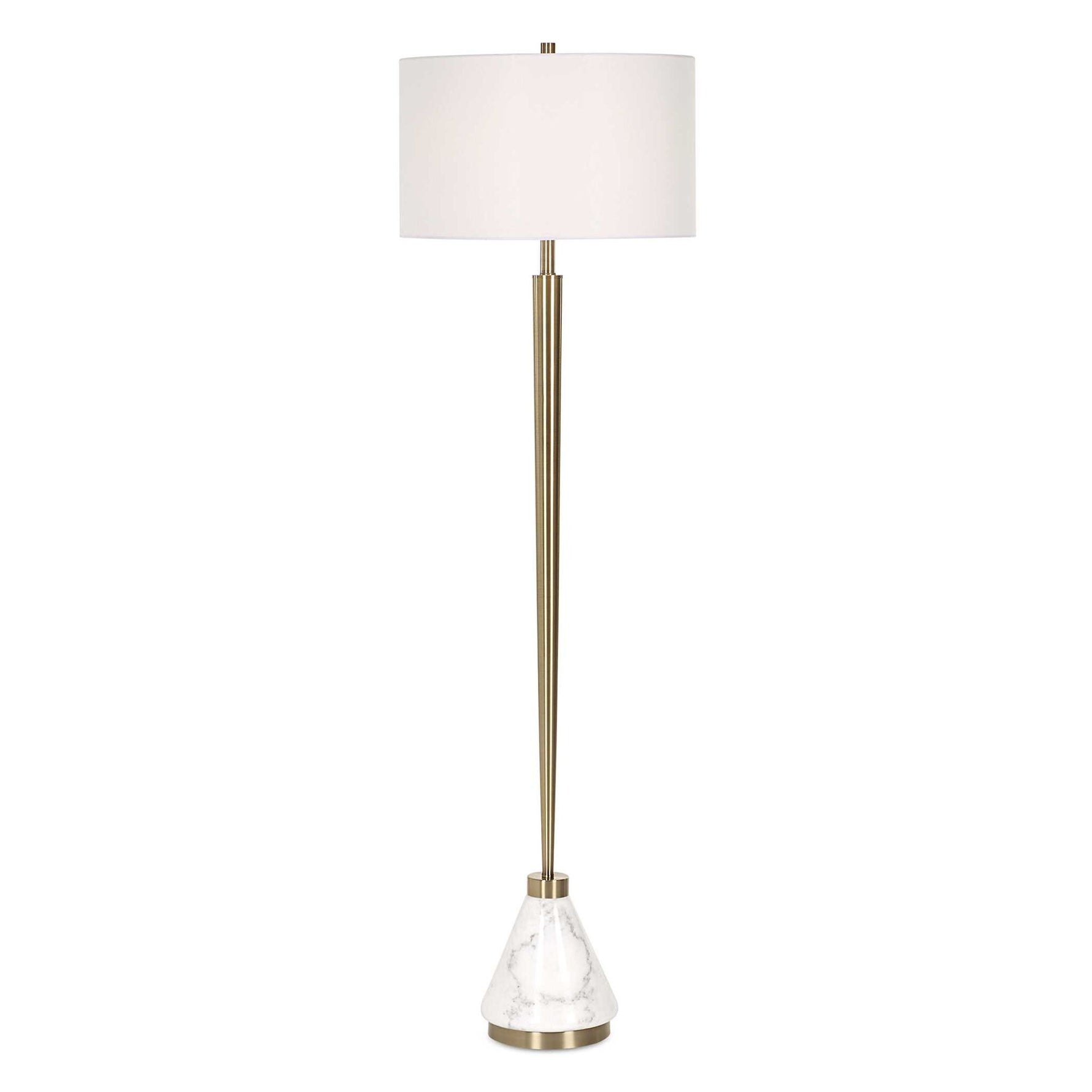 - The Curran Floor Lamp Features A Delicately Tapered Metal Body Finished In A Plated Brass And Paired With A Thick White Marble Foot.