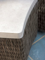 - The Weatherstone Top Appears As Honed Limestone Attached To A V-pattern Woven Wicker Base, Yet They Are Ideal For The Outdoor Elements