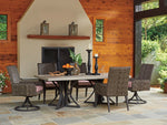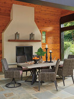 • Enjoy Outdoor Dining For Six With Your Choice Of Stationary Or Swivel Rocker Chairs Around The Rectangular Table