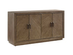 • The Inverted V-match Veneer On Both Pairs Of Doors Offers A Fresh Design To This Case Piece And Resembles The Dining Table Tops