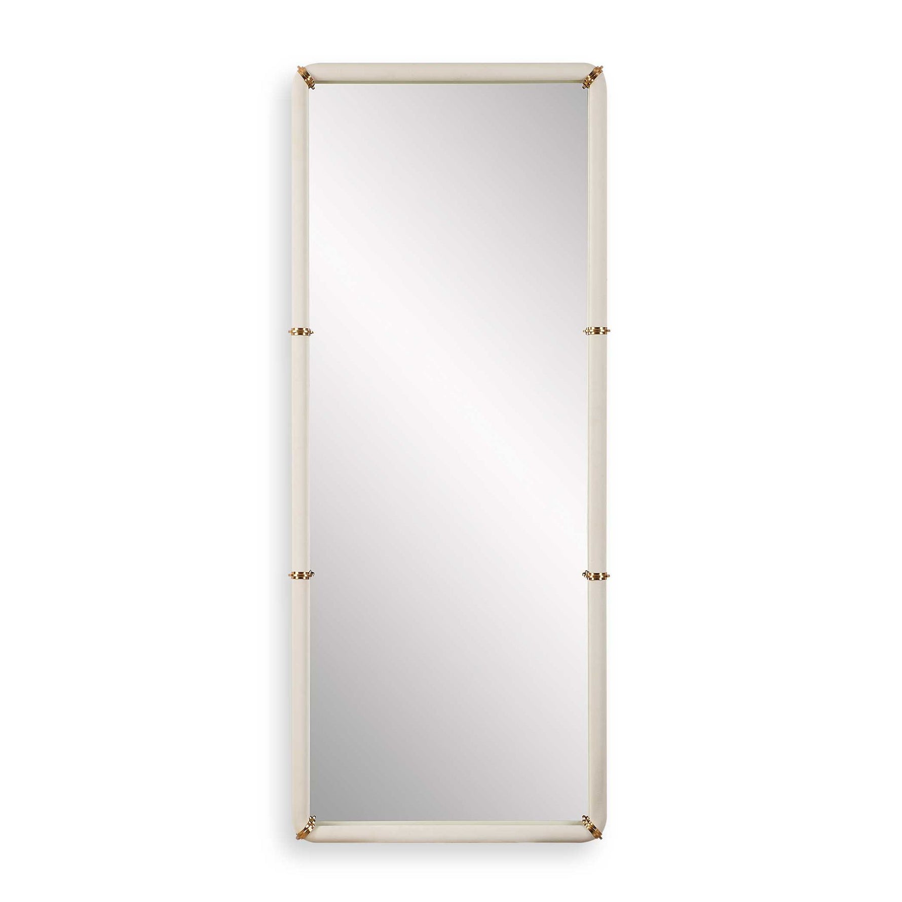 The Cyprus Mirror Showcases A White Faux Shagreen Leather Wrap Featuring Brass Plated Steel Bands That Help Elevate This Sophisticated Design. May Be Hung Horizontal Or Vertical.