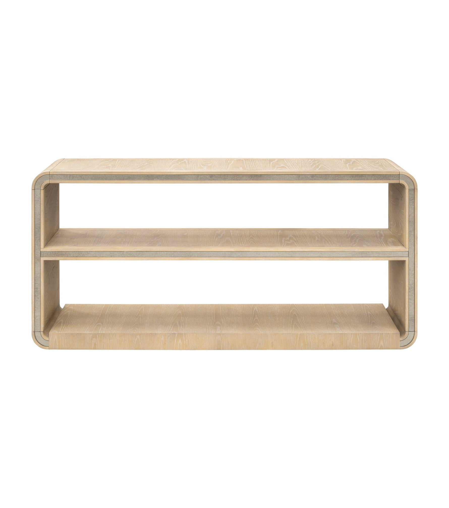 The Damone Console Table showcases a sleek, modern design crafted from white oak veneers in a casual blonde oak finish. Enhanced by elegant antique mirrored detailing, it adds a touch of sophistication to your entryway or living area. Featuring one convenient shelf, it provides ample space for decor items or essentials, combining functionality with style. This versatile piece seamlessly complements various decor styles, making it an ideal addition to any space.