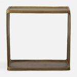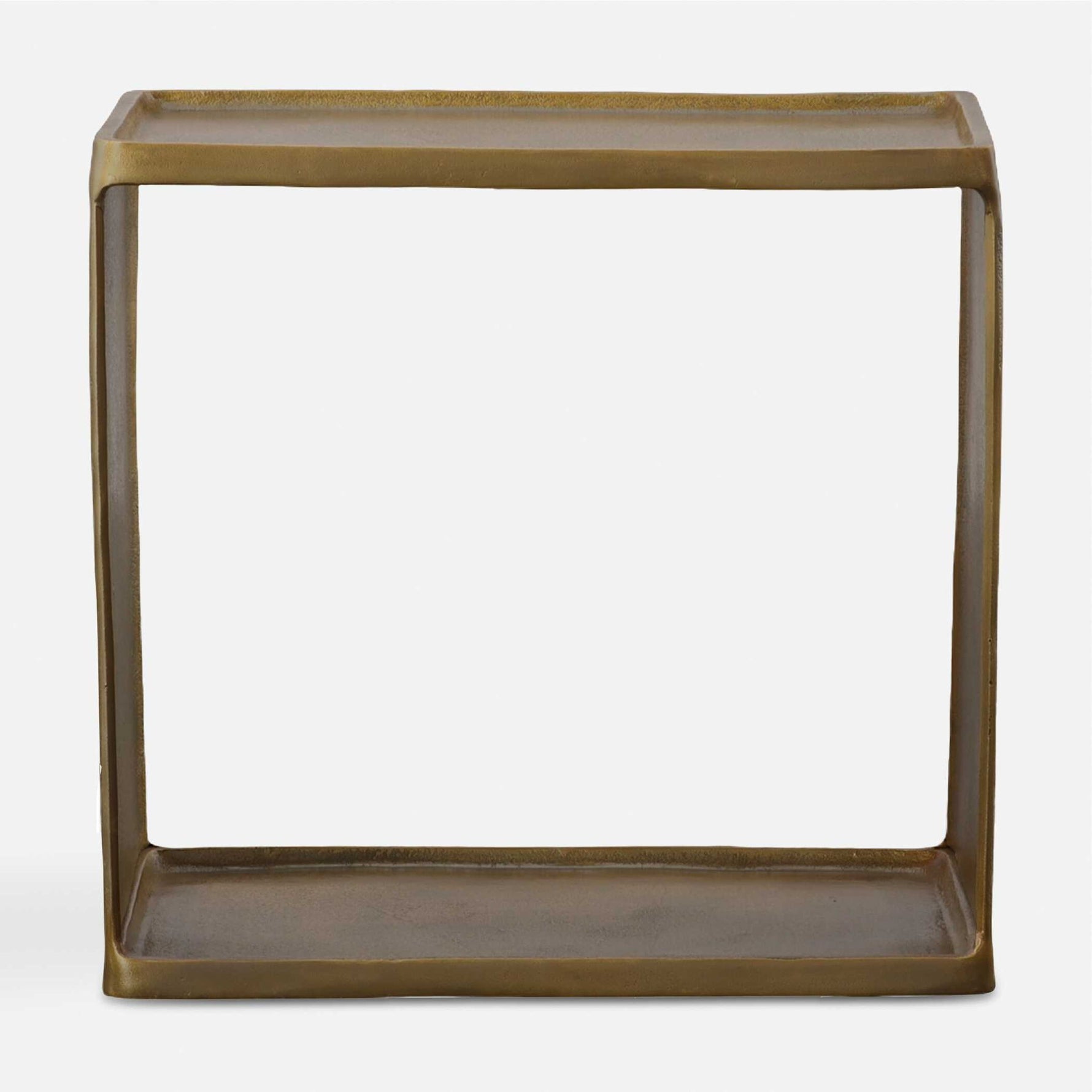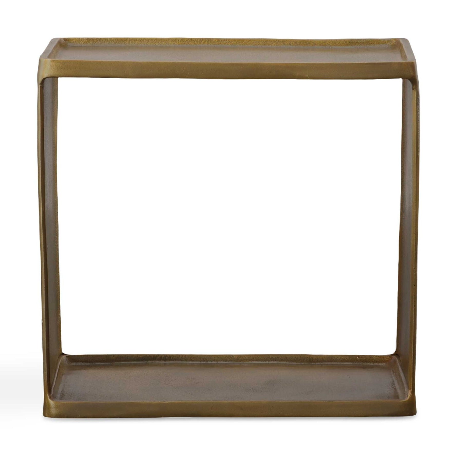 • Taking Inspiration From Industrial Style, This Cast Aluminum Accent Table Features A Classy Look With A Tray Style Top In A Rich Antique Brass Finish. The Open Center Allows For Extra Display Space.