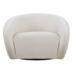 - A Sleek And Modern Accent, Featuring A Wraparound Back With Dramatic Waterfall Arms And A Swivel Base. Fully Upholstered In A Cream Polyester Velvet.