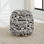 • A Statement Abstract Also Acting As A Neutral, The Dialogue Accent Stool Features A Black And Off White Pattern Over An Oak Finished Solid Wood Base With Beige Ceruse. Top Is Removable For Extra Storage.