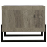 - Its grey driftwood finish showcases realistic wood grain, while geometric legs and clean lines evoke contemporary allure mixed with rustic warmth