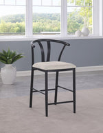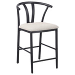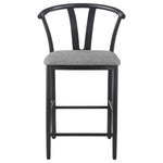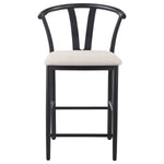 Inspired by Danish design, this counter height wishbone chair brings a touch of modern elegance to your dining or bar area. Its sleek metal frame offers exceptional sturdiness and durability, ensuring long-lasting use while maintaining a minimalist aesthetic. The foam-padded seat is upholstered in soft, textured fabric, providing comfortable seating for hours of enjoyment. Whether used at a kitchen island or counter-height table, this chair combines style, comfort, and functionality in a timeless design that enhances any space.
