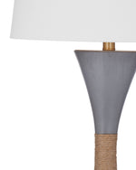 The Dorian Table Lamp features a fluted base in a sophisticated gray finish, adorned with subtle rope detailing for added texture and charm. Its tapered drum shade complements the modern aesthetic, creating a sleek and stylish silhouette. This lamp effortlessly elevates any space with its contemporary design and versatile appeal. Crafted with attention to detail and quality materials, it not only illuminates but also adds a touch of elegance to your home decor. Illuminate your living room, bedroom, or office with the inviting glow of the Dorian table lamp, a perfect blend of form and function.