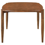 Will a Euro-inspired retro design work in your casual dining space? This modern dining table is suited to both contemporary and transitional spaces, bridging style aesthetics and adding multiple options for accenting with chairs and accessories. Walnut finish Asian hardwood construction is sturdy without adding an overly chunky look, maintaining the clean lines you like to see. This rectangular table features a straight edge top with rounded corners, and tapered legs joining in a frame that hosts its top with a drop-in configuration. This dining table makes the best of a casual Euro design motif with classic warm wood finishing and attention to detail, however simple.