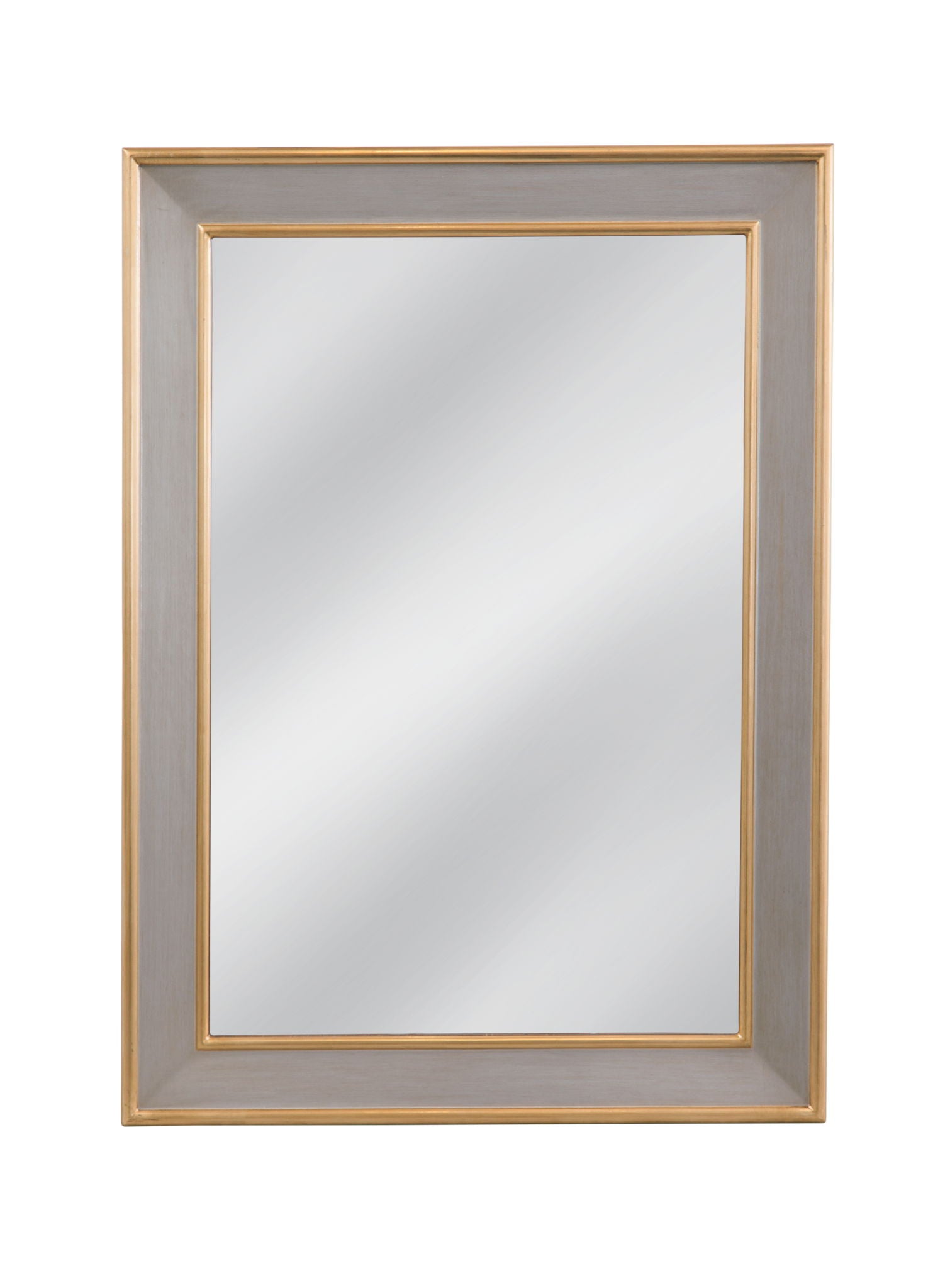 The Doubled Wall Mirror features a classic rectangular style with an antique gold inner and outter half round detail molding.