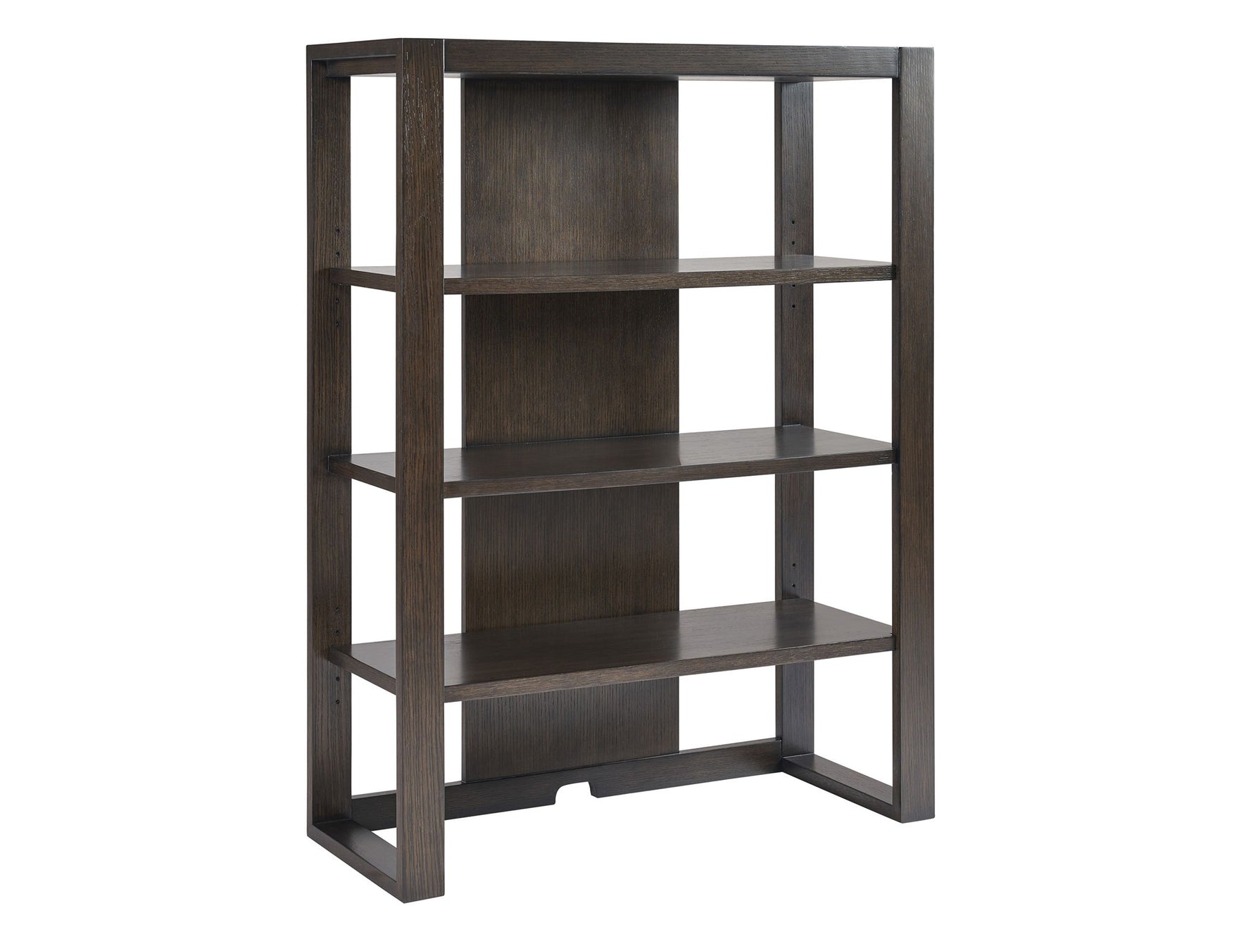 - Featuring A Stationary Wooden Shelf In The Center, With An Adjustable Wooden Shelf Above And Below. The Vertical Back Panel Has An Open Area On The Left And Right Creating A Visual Airyness For Display. Open End Panels Create An Attractive View From Any Direction.