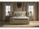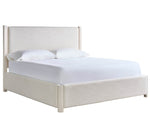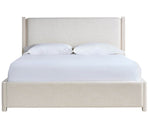 The Upholstered Bed presents a harmonious blend of comfort and architectural detail. Its warm finish frames a softly upholstered headboard and base, creating a serene and inviting focal point for your bedroom. The bed's clean lines and natural wood accents evoke a sense of refined tranquility, perfect for a restful retreat.