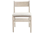 The River Rock Wood Back Side Chair combines classic design with a modern twist. Featuring a woven nylon seat for added durability and a light and airy River Rock finish, its clean lines and simple silhouette bring a touch of casual elegance to your dining space. The chair's comfortable design and natural wood finish create a welcoming and stylish seating option.